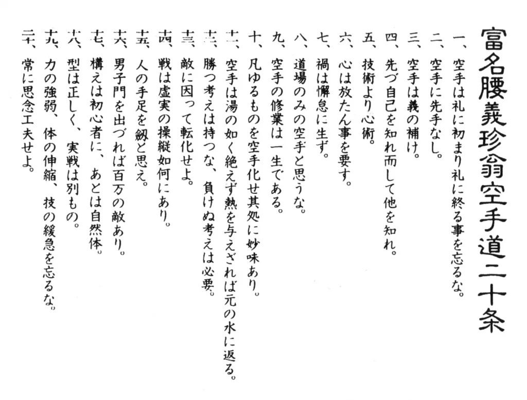 Twenty Precepts of Karate or 'Niju Kun' written by Gichin Funakoshi